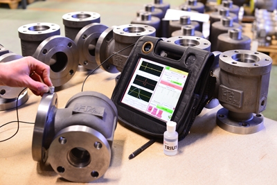 In order to avoid these problems, Total asked Cetim to set up a quick heat treatment quality inspection method for valves. The Cetim-Trius solution is comprised of a rugged tablet equipped with an ultrasonic board and a probe.